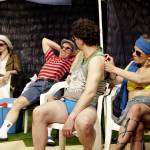 Dabei wechseln sie den Standpunkt und nehmen die Positionen der Wartenden, der Zurückgebliebenen ein, die voller Sehnsucht, voller Hoffnung, voller Sorge, voller Liebe aber auch voller Hass sind. Es entsteht ein Panorama des Wartens, aufgeladen mit dem Mythologischen, dem Heldentum, dem Heimatbegriff, dem Göttlichen des Stoffes. Die Irrfahrt des Odysseus bleibt dabei immer präsent und wird als Hoffen, als Hörensagen, als Gerücht erzählt. Aus einer Geschichte der Heimkehr wird die irrwitzige Geschichte des Wartens.